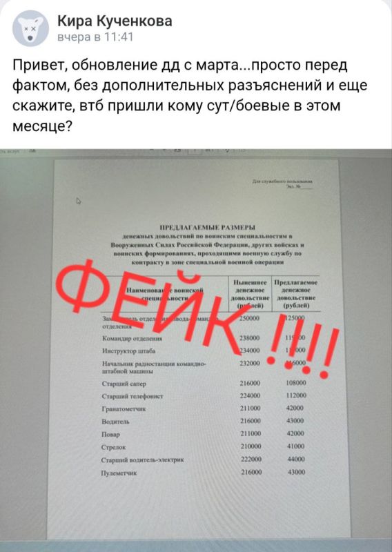 Фейк активно распространяли в социальных сетях, накануне в редакцию «МОЁ!» поступило точно такое же сообщение. В фальшивом документе было указано, что выплаты для военных разных специальностей снизятся в 2-5 раз.
