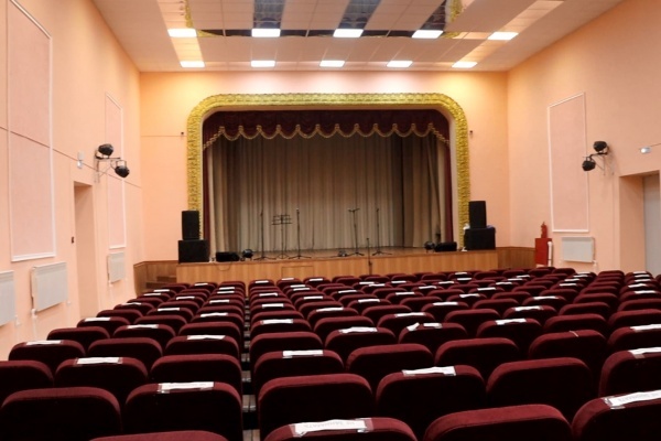 Согласно заданию на проектирование, зрительный зал и фойе совместят с помещением для отдыха и развлечений, лекционно-информационными и студийно-кружковыми помещениями. Зал на 248 зрительских мест, является малым, поэтому не предназначен для просмотра кинофильмов. Все это будет располагаться на первом этаже, также, как и вестибюль с гардеробной, репетиционная комната, читальный зал. Кроме того, в непосредственной близости к сцене предусмотрены помещения гримерной и костюмерной, инвентарная. Предусмотрены женский и мужской санузлы, санузел для маломобильных групп населения, санузел для артистов с душевой, помещение уборочного инвентаря, касса, пост охраны.