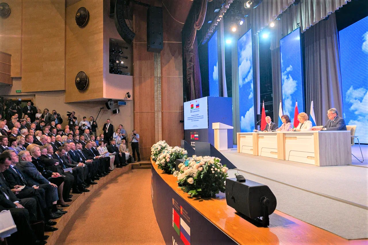 Участников заседания, модератором которого стала Председатель Совета Федерации Федерального Собрания Российской Федерации Валентина Матвиенко, приветствовали Президенты Российской Федерации и Республики Беларусь.