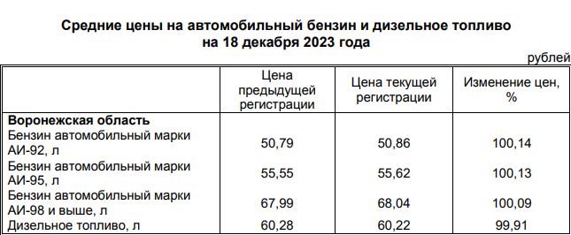 Под занавес года выросли цены на бензин на заправках в Воронежской области