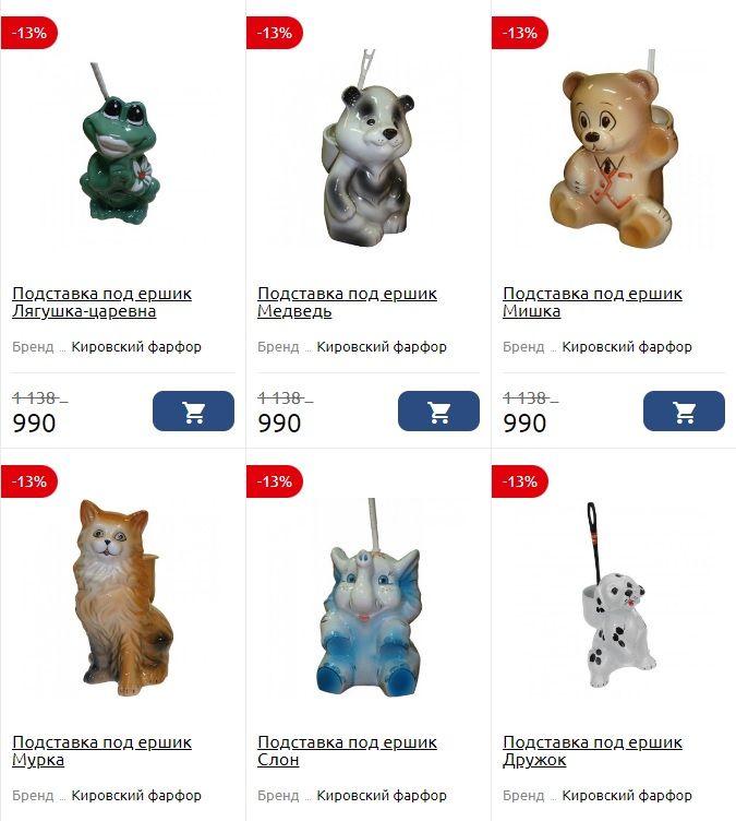 На сайте компании можно найти очень интересные варианты: фарфоровые подставки под ёршики в виде животных.