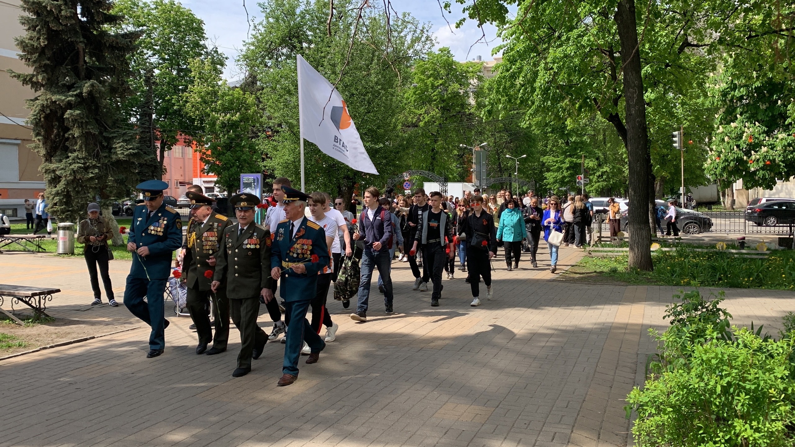 Утро 5 мая студенты и сотрудники академии начали с ежегодной экскурсии по местам боевой славы Воронежа: Девицкий выезд, роща Фигурная, район ТРЦ «Московский проспект» (Роща «Сердце»), памятник «Ротонда»,