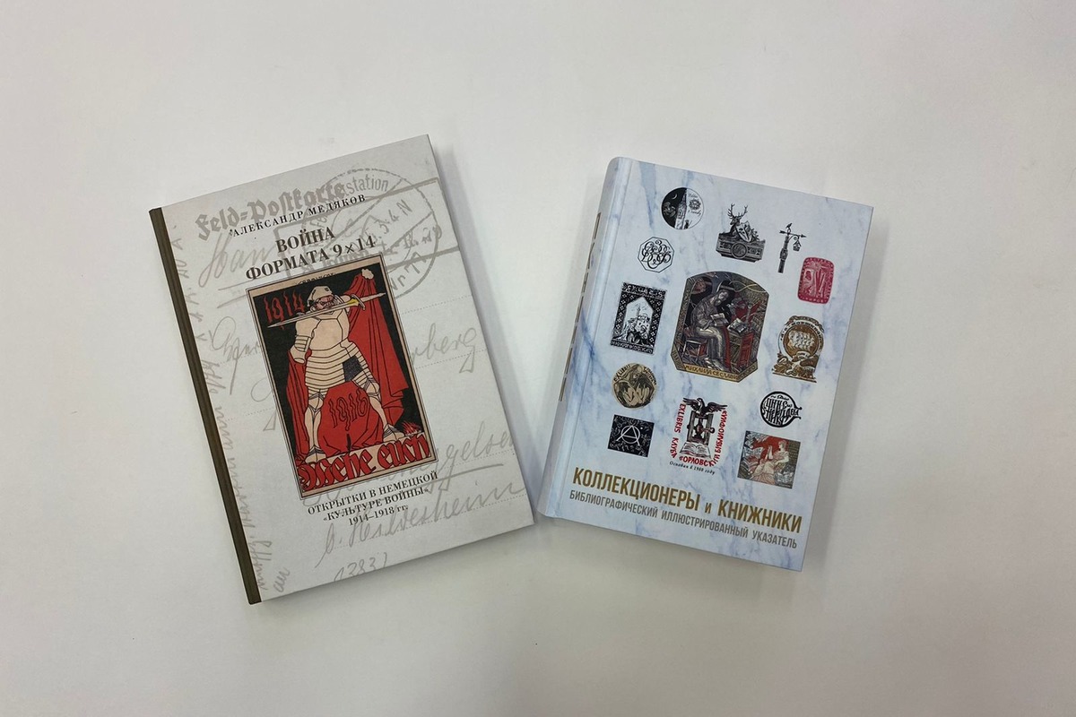 Помимо этого, на выставке можно увидеть монографию доктора исторических наук Александра Сергеевича Медякова «Война формата 9 x 14. Открытки в немецкой “культуре войны” 1914–1918 гг.». В книге автор рассматривает искусство немецких почтовых карточек, которые отражают повседневную жизнь, менталитет, пропаганду и идеологию в их взаимодействии. На примере визуальных образов представленных в издании открыток читателю будет интересно проследить, как во время Первой мировой войны возникло понимание немецкой нации, её врагов и союзников.
