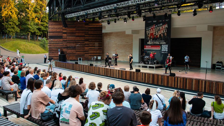 В воронежском «Зеленом театре» прошел благотворительный концерт патриотической группы «Наши» в субботу, 12 августа. Вход на мероприятие был свободный – по предварительной регистрации.