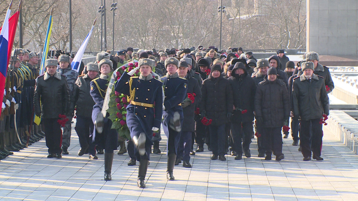 В канун Дня защитника Отечества в Воронеже возложили цветы к могиле Неизвестного Солдата на площади Победы.