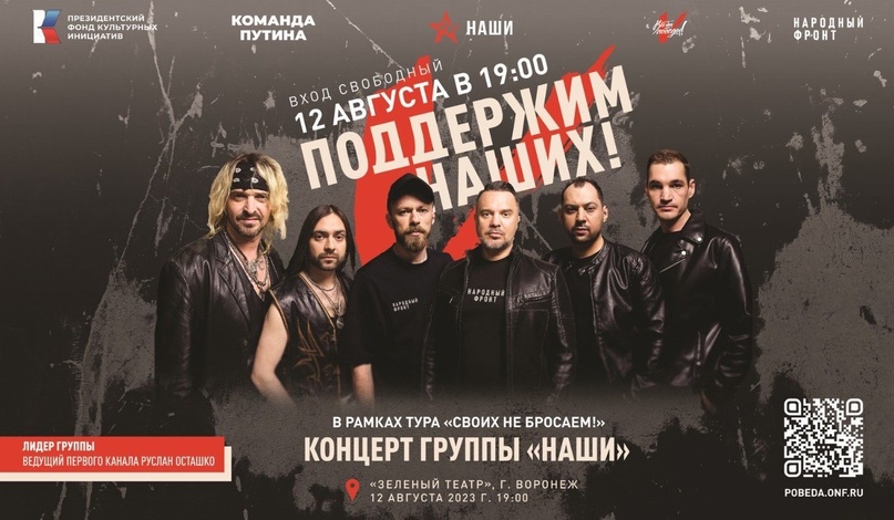 В рамках тура «Своих не бросаем» в Воронеже в субботу, 12 августа, состоится концерт группы «НАШИ».