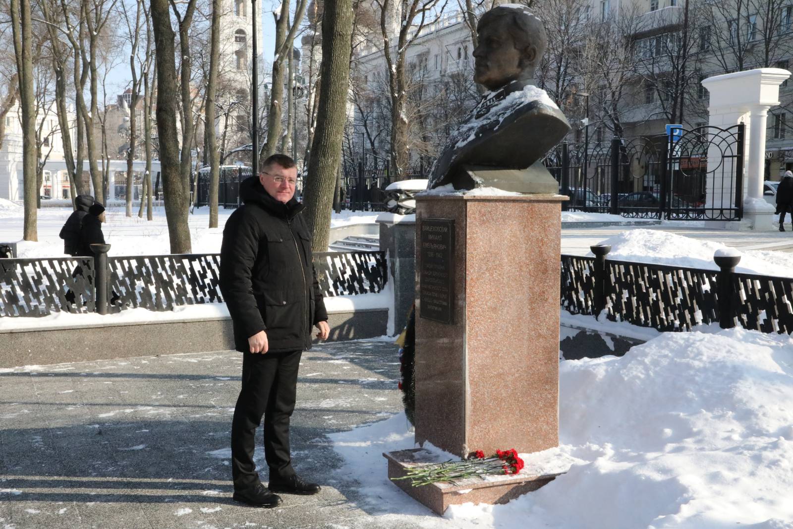 Сотрудники и обучающиеся ВГМУ им. Н.Н. Бурденко во главе с проректором по воспитательной работе и молодёжной политике Алексеем Николаевичем Морозовым накануне Дня защитника Отечества, 22 февраля,