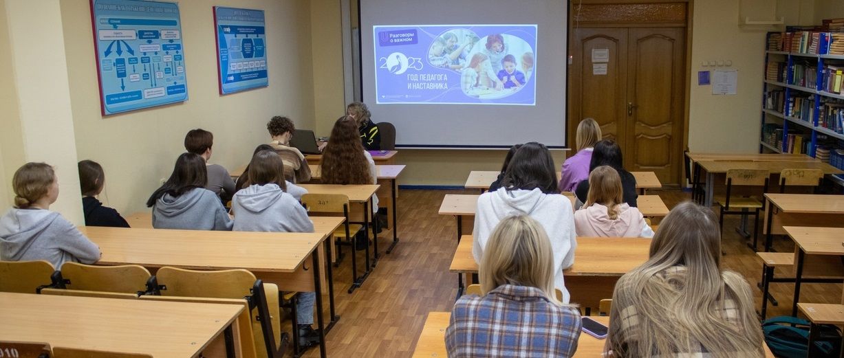 Сегодня кураторы и студенты поговорили о верных хранителях знаний, культуры и духовных ценностей – об учителях. И неслучайно: 2023 год объявлен Президентом Российской Федерации В. В. Путиным Годом педагога и наставника.