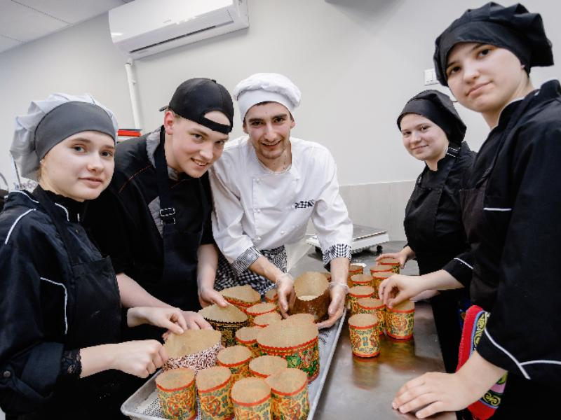 Представители студенческих сервисных отрядов ВТППП сейчас проходят обучение по направлению пекарь и уже научились готовить традиционную пасхальную выпечку - кулич. Они отрабатывали не только теорию, но и саму технологию: правильный замес теста, размещение в форме, глазировка верхушки кулича и правильный температурный режим для выпекания.