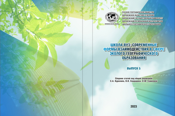 Сборник статей подготовлен по результатам проведения Воронежским региональным центром развития школьного географического образования на базе факультета географии, геоэкологии и туризма ВГУ V межрегионального научно-методического семинара для педагогов по проблемам взаимодействия средней и высшей школы в сфере эколого-географического образования.