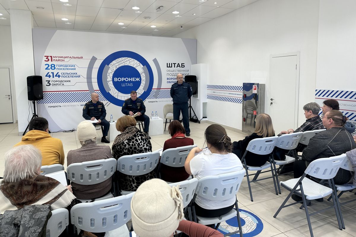 Занятие прошло на площадке Штаба общественной поддержки. Участие в нем приняли председатель правления ВРОО «Жилищный контроль» Лариса Тулинова , старшие по многоквартирным домам и активные жители. Провели занятие руководитель Государственной жилищной инспекции Воронежской области, председатель общественного совета партийного проекта в регионе Дмитрий Соломаха , начальник управления гражданской обороны и защиты населения Главного управления МЧС России по Воронежской области Сергей Хриченко .