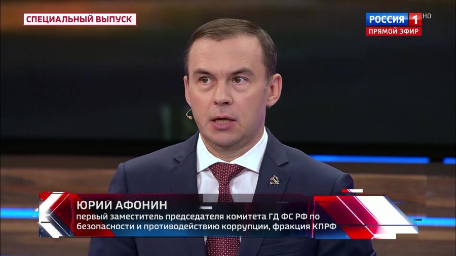 Первый заместитель Председателя ЦК КПРФ Ю.В. Афонин принял участие в программе «60 минут» на телеканале «Россия-1».