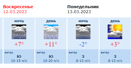 Прогноз погоды в Воронеже на воскресенье, 12 марта