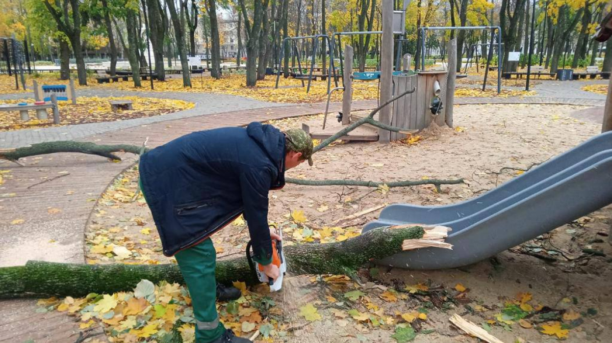 В Центральном парке упало четыре дерева, в парке «Южный» – два, ещё одно – в парке имени Дурова. Кроме того, крупные ветви упали и повредили лавочку в парке «Орлёнок». Стволы и ветки убирают сотрудники «ЭкоЦентра».