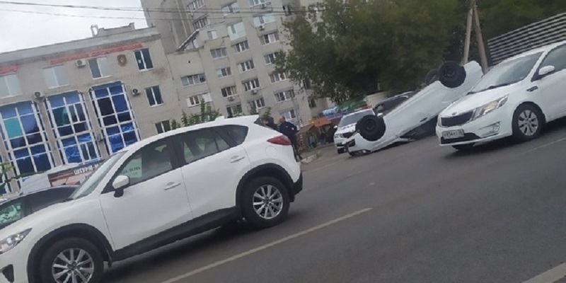 В Воронеже на Московском проспекте перевернулся автомобиль