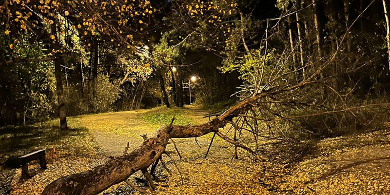 Порывы ветра в субботу, 28 октября, были настолько сильными, что два дерева упали в парке «Оптимистов» в Воронеже.