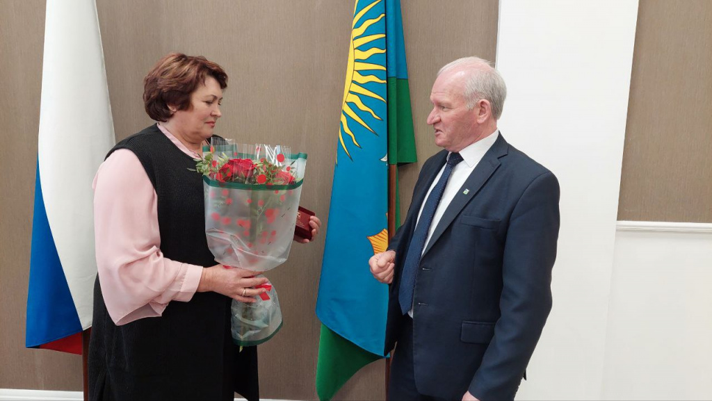 Совещание началось с приятного момента вручения знака отличия «За заслуги перед Воробьёвским муниципальным районом» Саломатиной Галине Владимировне – главе Солонецкого сельского поселения.