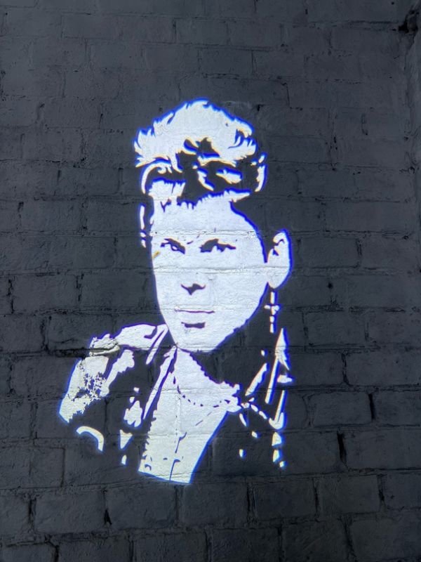 Фото: Михаил МеркуловПортреты Михаила Горшенёва, Виктора Цоя, Курта Кобейна и Сергея Бодрова вновь появились в арке у бара. В этот раз стена объекта культурного наследия не пострадала — изображения размещены в виде проекций.