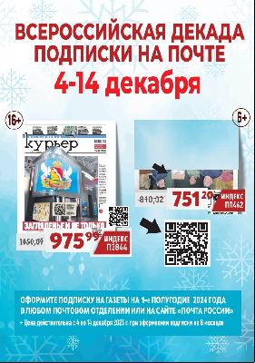АО "Почта России" с 04 по 14 декабря 2023 г. проводит Всероссийскую декаду подписки на 1-е полугодие 2024 г.