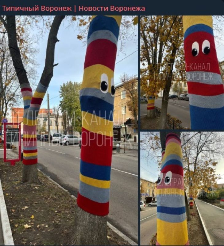 В Воронеже нарядили деревья в яркие чехлыНа улице Текстильщиков в Воронеже утеплили деревья. Снимки растений в ярких разноцветных чехлах опубликовали в соцсетях.