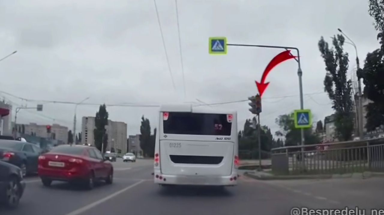 Дерзкий манёвр нетерпеливого водителя автобуса попал на видео в Воронеже