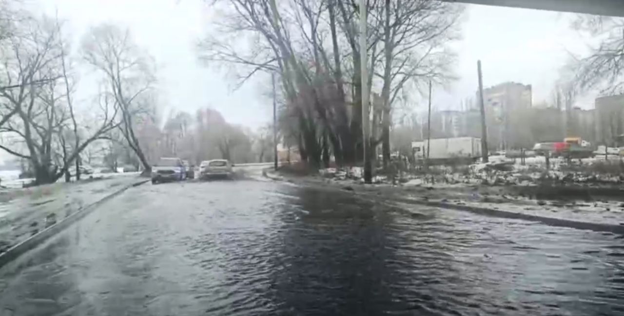 Из-за оттепели и небольшого дождя в городе растаяло много снега. Залившая самые проблемные участки дороги в Воронеже вода уже традиционно мешает движению автомобилей. Особенно сложно легковушкам двигаться на выезде с Северного моста со стороны левого берега.