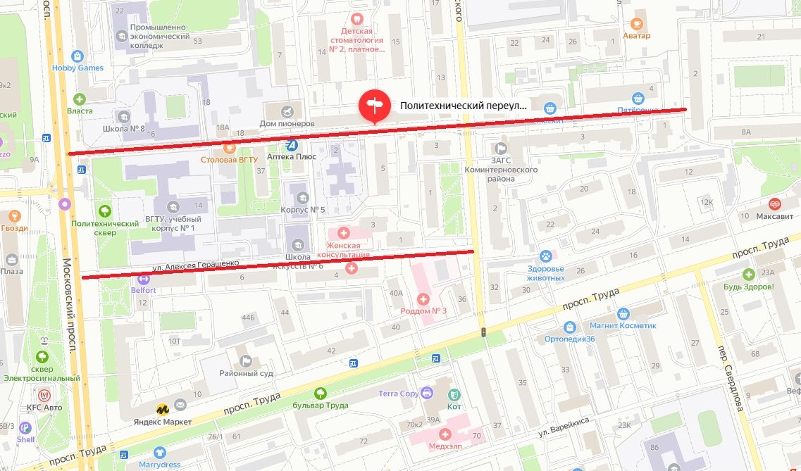 Изменения коснулись Политехнического переулка и улицы Алексея Геращенко.