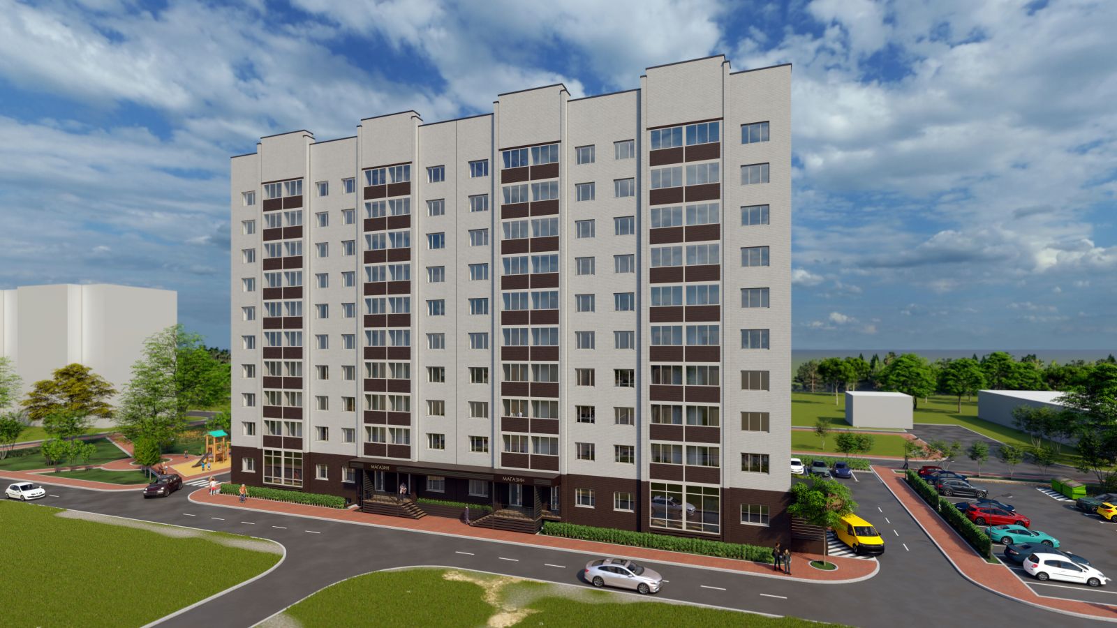 Вот такой дом по проекту должен вырасти на месте пустыря на Курчатова, 32.— Куда всё это собираются впихнуть — непонятно: участок переплюнуть можно, — Алексей Сидоров, живущий в доме 32а, пожимает плечами. — Судя по проектной документации, расстояние «от стены до стены» от нашего дома то того будет в пределах 35 — 39 метров при нормативном минимуме в 40 метров. Будем любоваться на чужие окна и подслушивать соседей. Более того, застройщик нам заявил, якобы половина наших парковочных карманов — это его территория. И больше половины вон той дороги — за стройплощадкой — тоже его! Рабочие даже шуруп там вкрутили — «пометили границу». Когда вокруг стройки возвели забор, то оттяпали тротуар — ходим теперь по проезжей части. Куда мы только ни жалуемся — кругом ответ, что нарушений нет, стройка ведётся по закону.