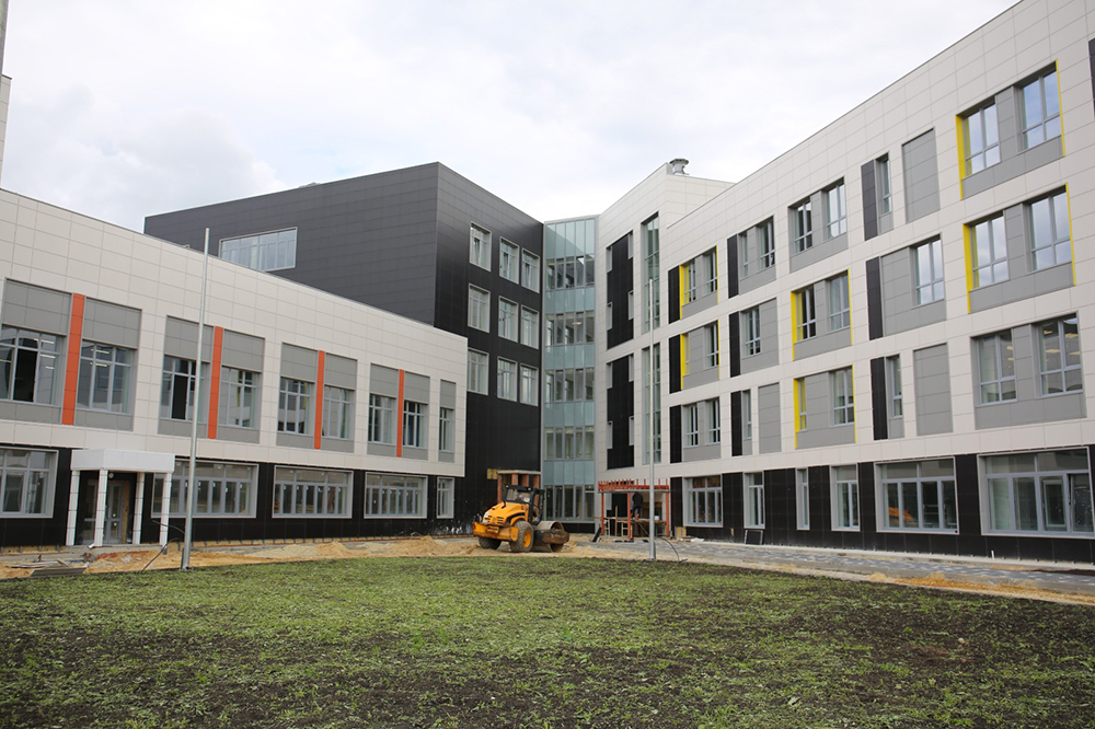 На сегодняшний день на объекте ведется отделка помещений, монтаж сантехнических приборов, устройство внутренних инженерных систем здания школы (слаботочные системы), наружных сетей канализации, уличного освещения, устройство проездов и благоустройство территории – здесь должны появиться газон, 143 дерева, более 4 тыс. кустарников и 85 квадратных метров цветников.