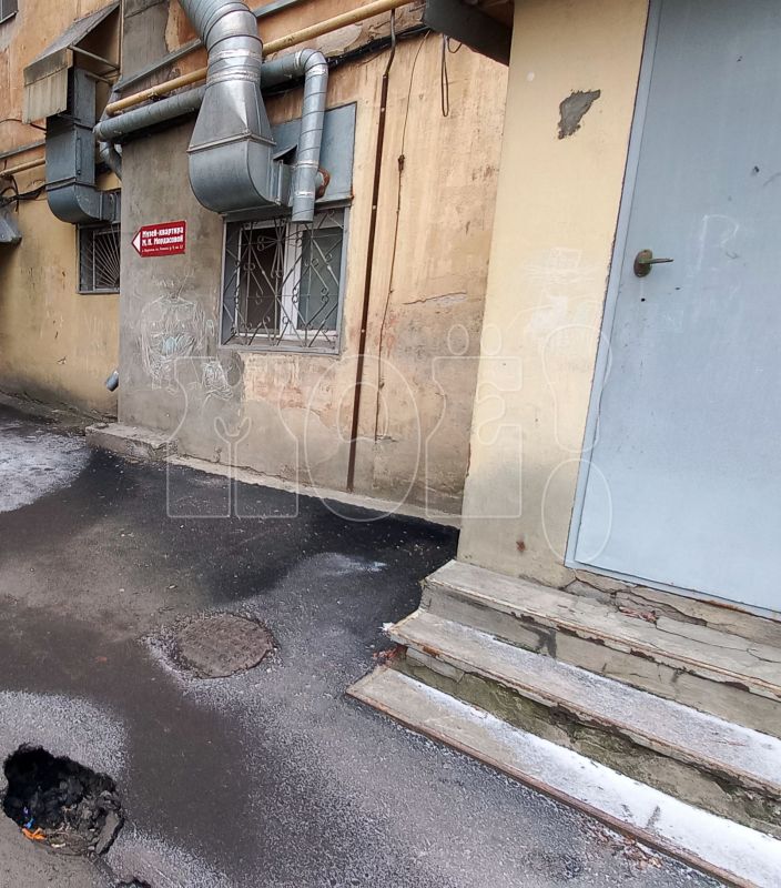 В левом нижнем углу яма, о которой мы говорим. Фото: читатель «МОЁ! Online»Музей народной артистки СССР расположился в доме № 9 на площади Ленина. Попасть в него можно через знаменитую арку с вывеской «Кафе «Млечный путь», которое уже не работает. На наш взгляд, ходить там в тёмное время небезопасно, но читатели «МОЁ! Online» не советуют даже днём.