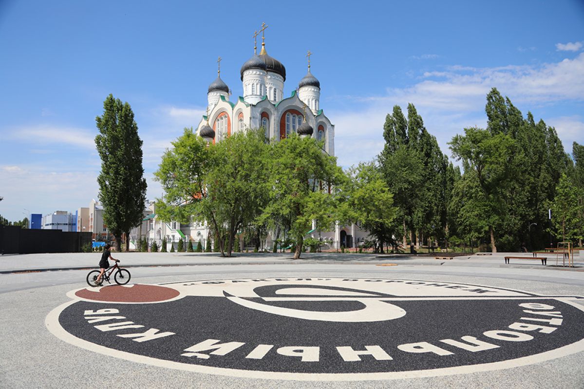 Подрядчики завершают первый этап благоустройства сквера Примирения и согласия, примыкающего к спортобъекту