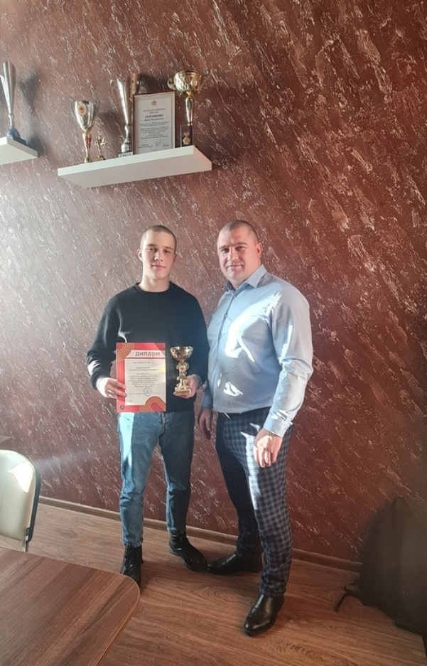 В понедельник 23 января директор Центра тестирования ВФСК ГТО Новоусманского района Терешков Иван Валерьевич наградил Куликова Леонида,занявшего 3 место в 5й возрастной ступени ВФСК ГТО в региональном этапе ежегодного регионального творческого конкурса «ГТО в моей жизни» в номинации «Сочинение». Иван Валерьевич пожелал Леониду и дальше принимать участие в конкурсах, организованных ЦРФКС, а также успехов в творчестве и спорте.