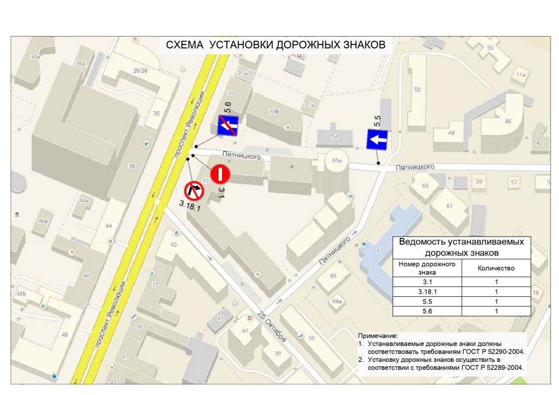 Одностороннее движение введут на участке от дома № 65а на Пятницкого до дома № 35 на проспекте Революции.