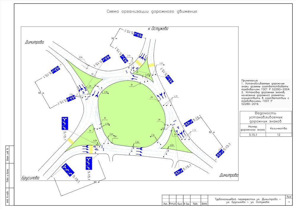 Турбокольцевой перекрёсток появился на пересечении улиц Димитрова, Брусилова и проезда к улице Остужева — на месте классического кольца.