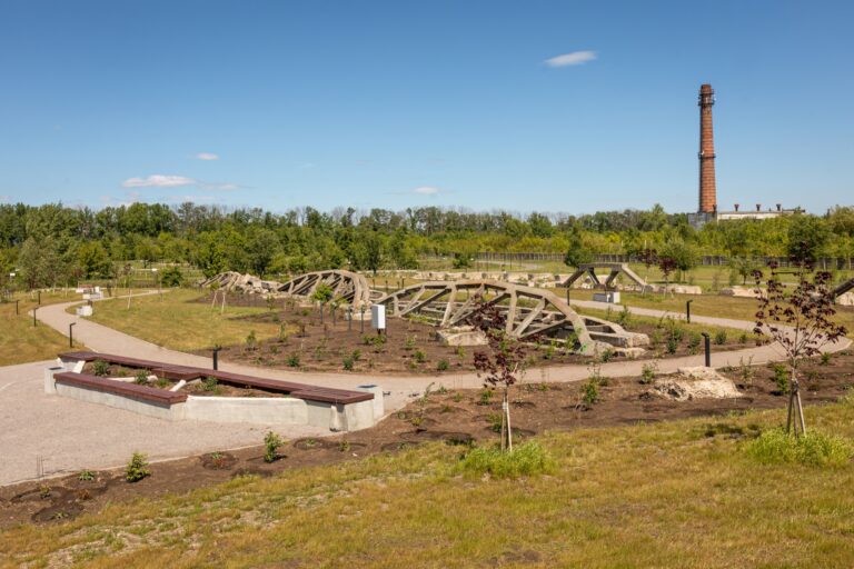 Территория, на которой появился парк, изначально представляла из себя поле с бетонными конструкциями так и не возведенного цеха завода. Эти «останки» формировали уникальный ландшафт парка, который сочетает в себе как элементы природы, так и индустриального наследия. В рамках создания парка были использованы современные подходы к ландшафтному дизайну, что позволило максимально эффективно интегрировать остатки завода в новый проект.