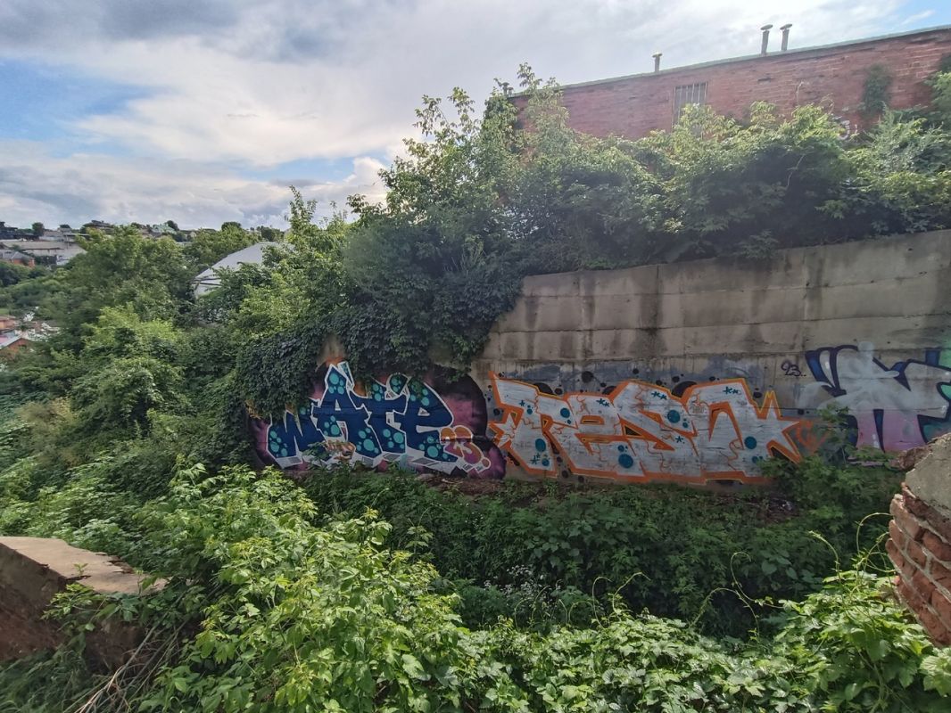 На противоположной стене нарисовали новое граффити. Рисунки уличных художников смотрятся крайне неуместно на стенах охраняемого исторического места.