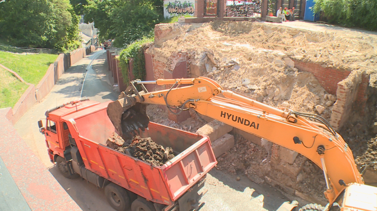 – Напор грунта, который остался, всё-таки большой. В той кирпичной кладке, которую мы пытались разрушить сегодня, есть трещина. Но мы её усилим с наружной стороны для того, чтобы уменьшить нагрузку на эту стену, – рассказал директор компании-подрядчика Александр Работкин.