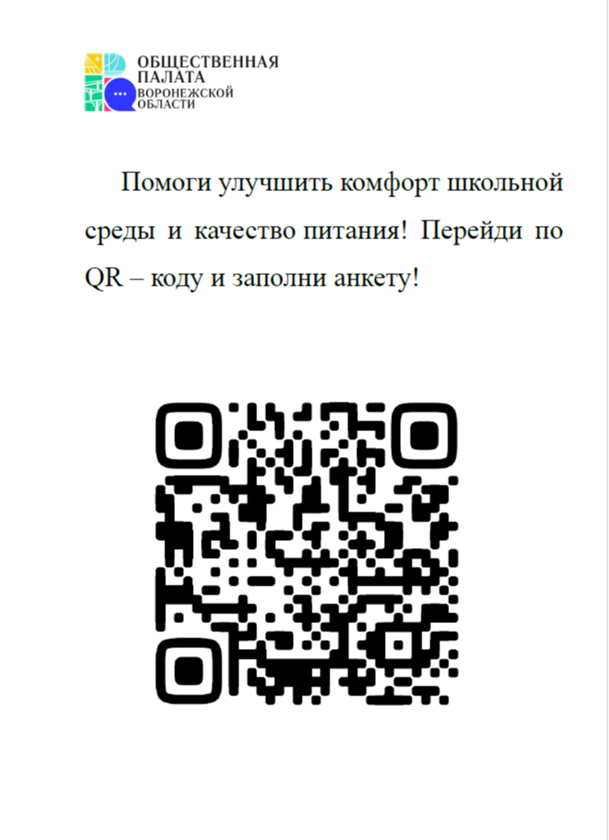 Помоги улучшить комфорт школьной среды и качество питания! Перейди по QR – коду и заполни анкету!