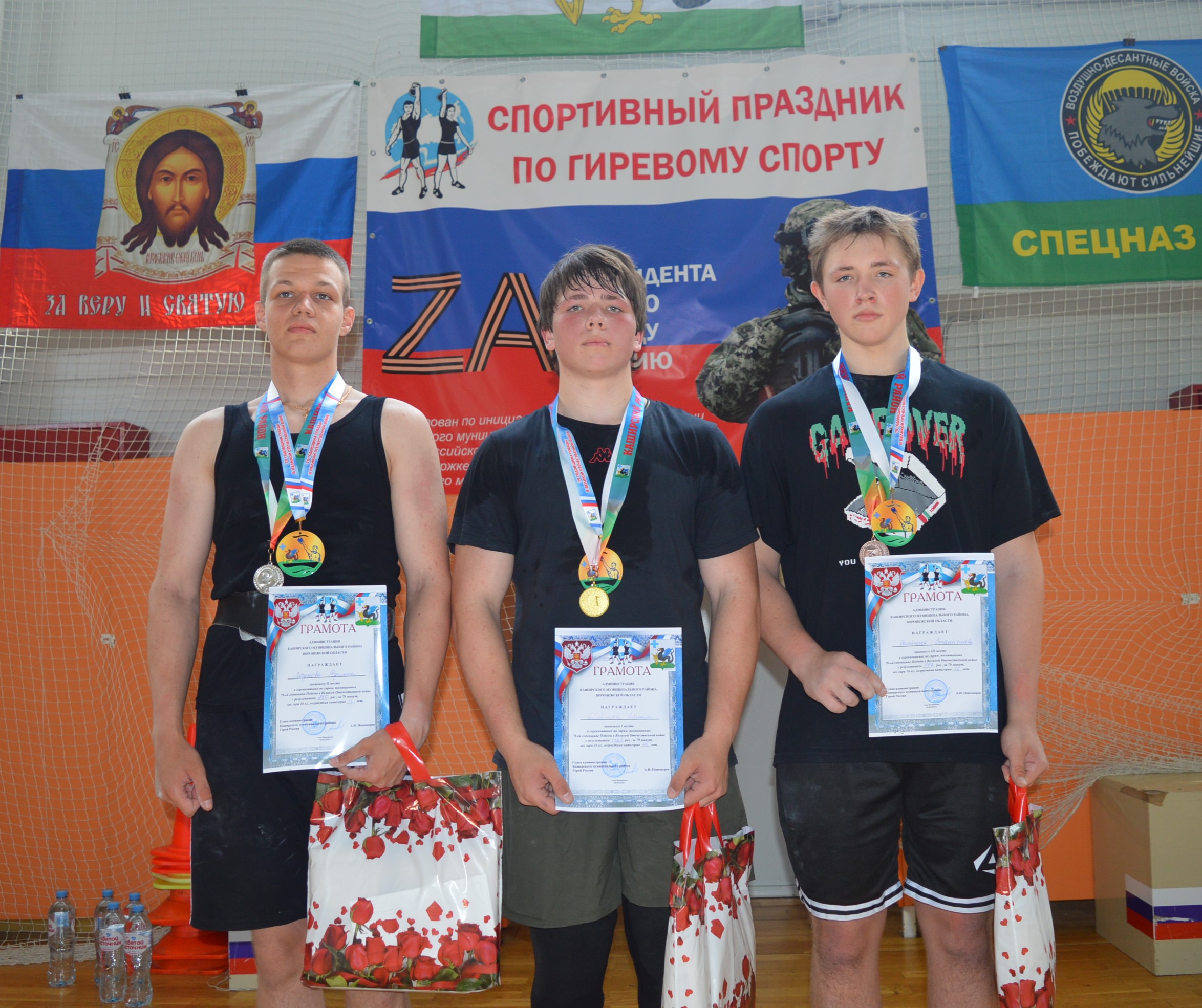 В личном зачете по толчку гири 16 килограммов в категории «Учащиеся Каширской школы 16 лет и старше» первое место завоевал Алейник Данил, он поднял гирю 1167 раз, второе место у Логунова Руслана, он поднял гирю 850 раз. Третье место у Алейник Станислава, который поднял гирю 797 раз.