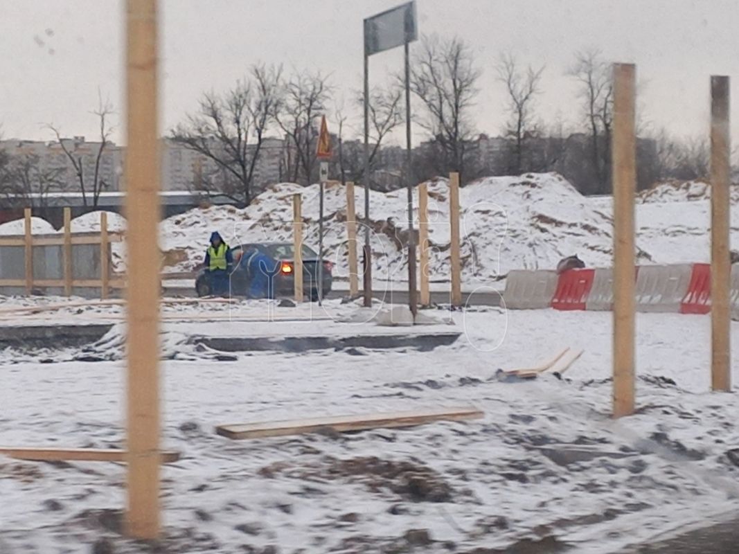 Участок земли внутри турбокольца на улице Остужева начали огораживать забором.