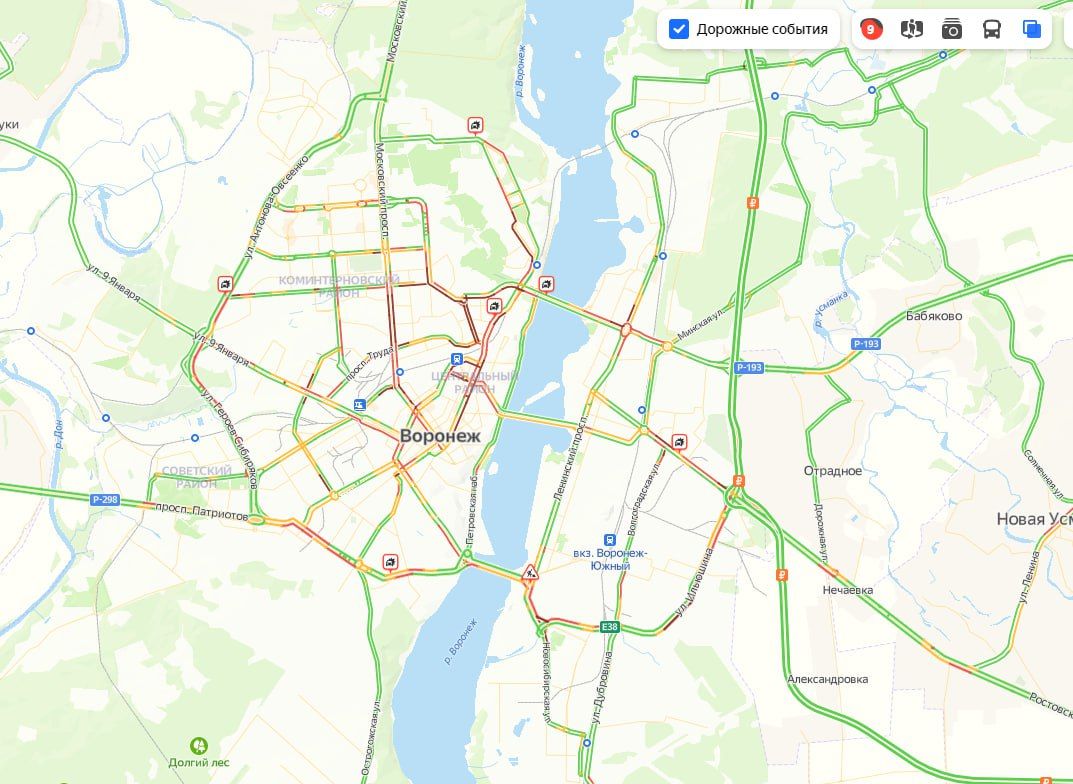 Воронеж сковали 9-балльные пробкиНа дорогах Воронежа образовались 9-балльные пробки сегодня, 23 мая. Об этом свидетельствуют данные сервиса «Яндекс.Пробки».