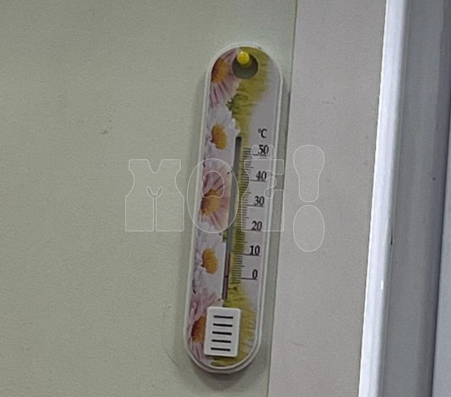 По их словам, дети могут находиться в классах только в куртках. Столбик термометра в коридоре показывает +9°.
