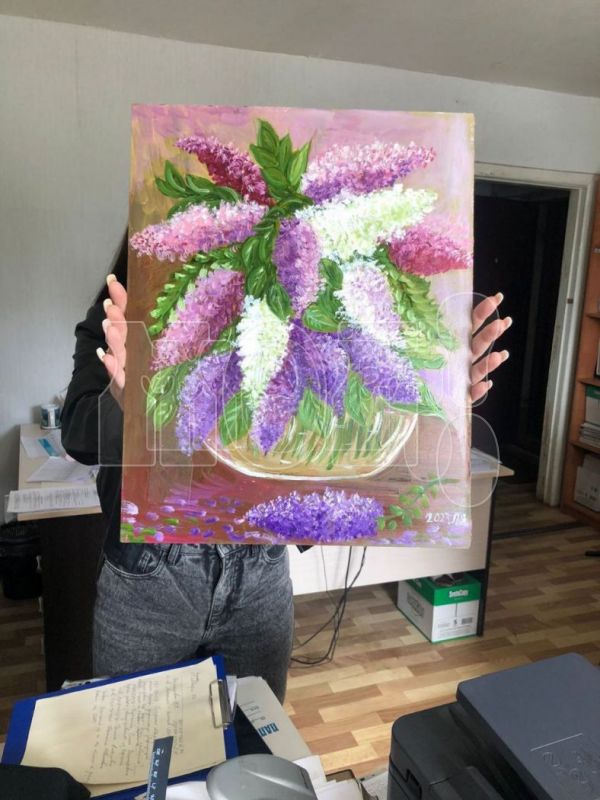 В знак благодарности за ремонт художница подарила коммунальщикам свою картину.