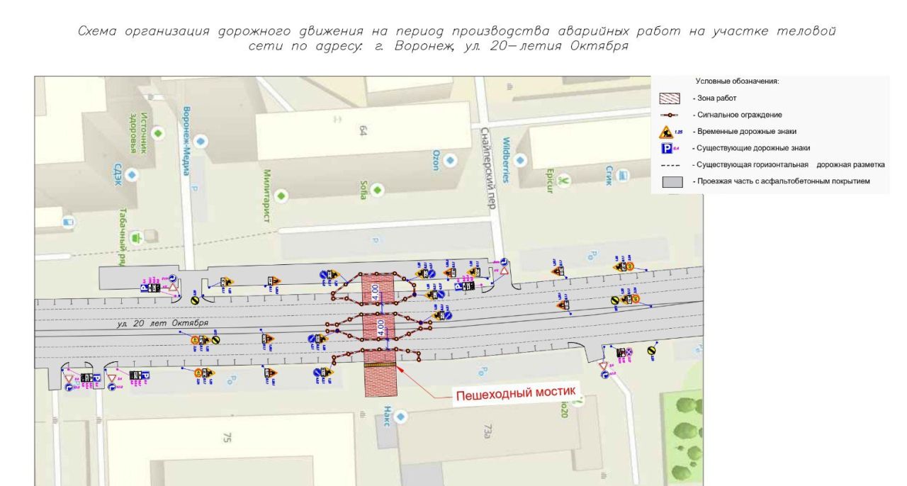 Движение будет осуществляться по одной полосе Воронежскую улицу частично перекроют из-за аварийных работ Схему движения скорректируют на улице 20-летия Октября с 10:00 понедельника, 29 апреля, до 15:00 субботы, 4 мая.