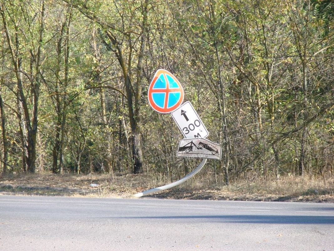 На извилистой дороге, ведущей к пляжу на Усманке в Боровом, появился странный дорожный знак, который уже неделю стоит в одном и том же положении. Этот знак, несмотря на его важность, кажется, был полностью проигнорирован как ГАИ, так и ЦОДД.