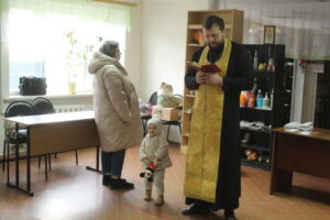 15 марта настоятель храма Георгия Победоносца с. Терновое Острогожского района иерей Артемий Дашенко с матушкой Александрой и помощник благочинного Острогожского церковного округа по социальной работе Наталья Черникова посетили пункт временного проживания беженцев из ДНР, ЛНР и Харьковской области.