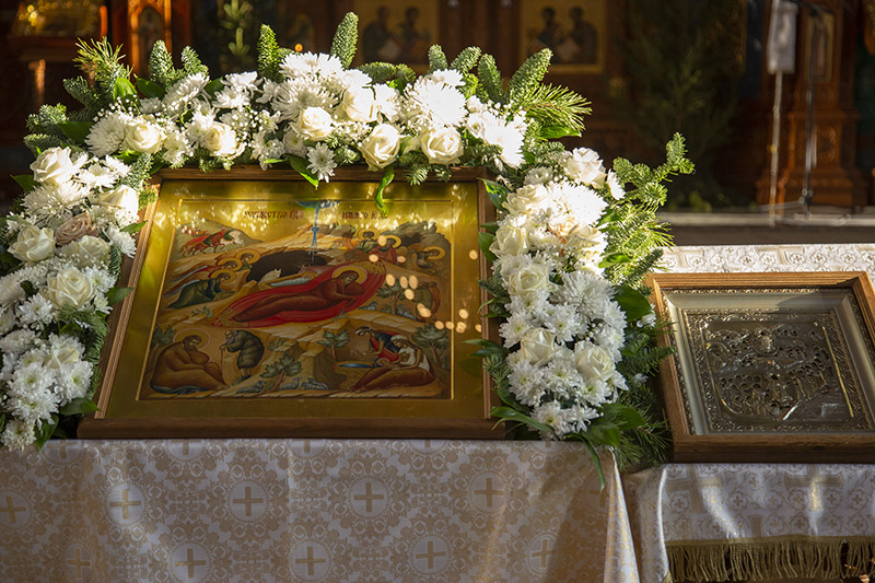 После входа с Евангелием и великого прокимна митрополит Сергий в Царских вратах прочитал евангельское зачало, повествующее о рождении в мир Господа нашего Иисуса Христа.