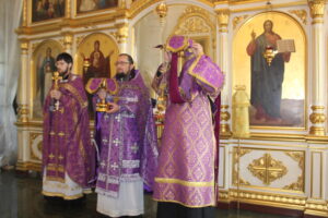 По благословению Преосвященнейшего Дионисия, епископа Россошанского и Острогожского, в канун праздника Воздвижения Честнаго и Животворящего Креста Господня 26 сентября на службе всенощного бдения в Свято – Тихоновском соборном храме г. Острогожска был совершён чин Воздвижения Креста.