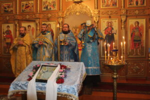 В завершении Крестного хода к духовенству и прихожанам храма обратился благочинный Острогожского церковного округа иерей Алексий Курганский с проповедью, в которой напомнил пастве о праздуемом событии, и о покровительстве Пресвятой Богородицы всем верным чадам Спасителя нашего Господа Иисуса Христа.