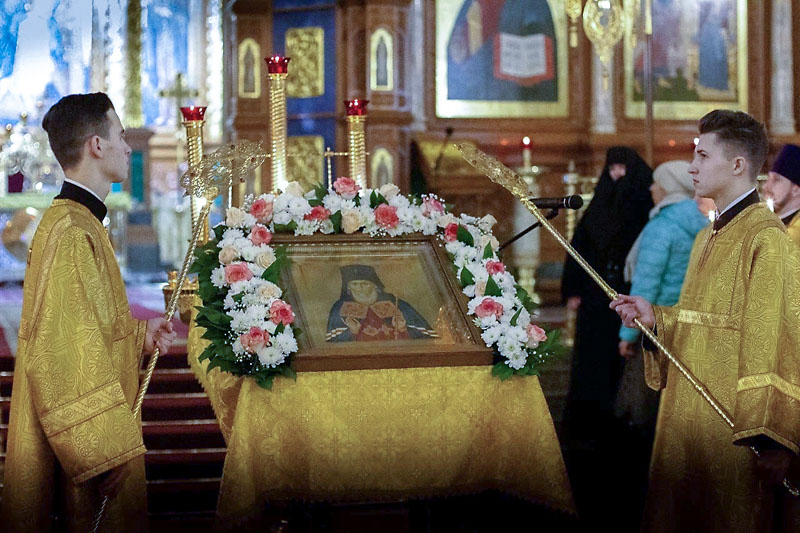 После отпуста литургии Высокопреосвященнейший митрополит Сергий с сослужащими Архипастырями совершил славление святителю Антонию Воронежскому у его иконы, в завершение которого духовенство и весь народ воспели величание ныне прославляемому Небесному покровителю Воронежского края.